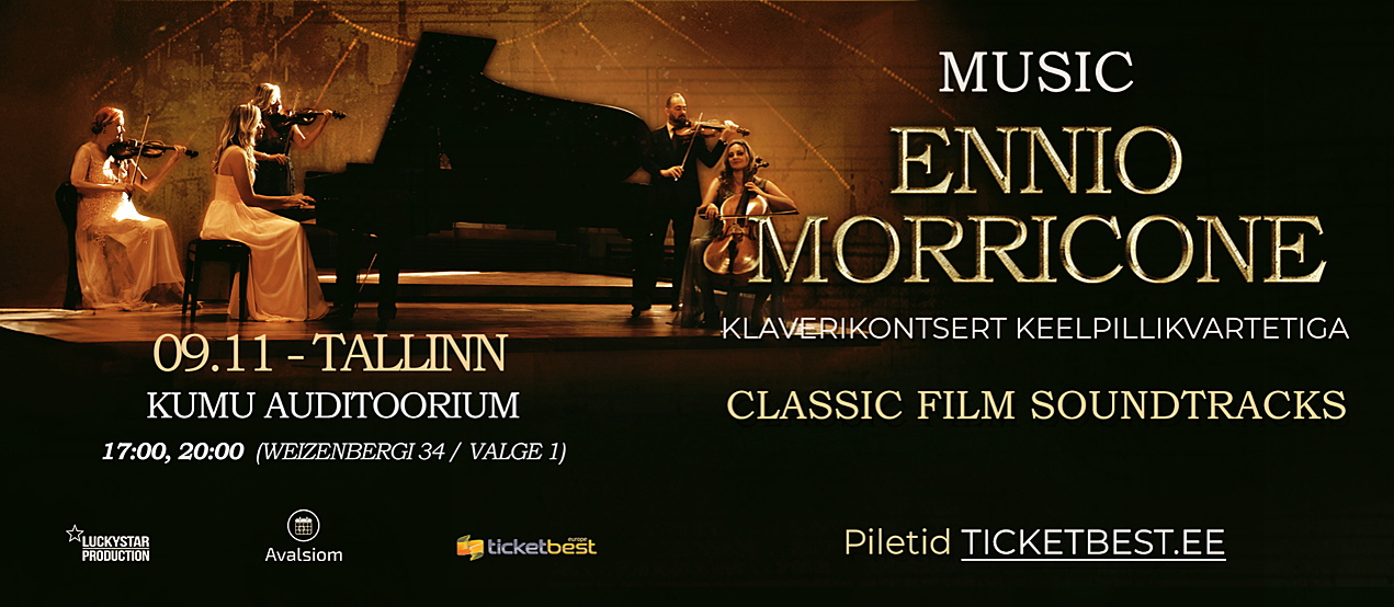 Ennio Morricone muusika klaveri ja keelpillikvarteti saatel. Kinoõhtu-klaverikontsert Ennio Morricone filmimuusikaga!