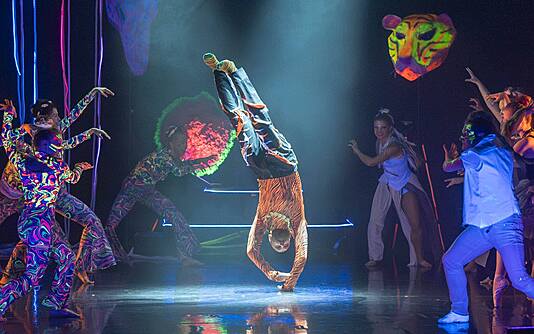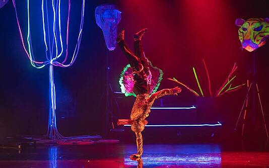 Džungel muutub neoonmaastikuks, saatjaks elavad etno rütmid, koos klassikaliste balletitantsijatega kütavad lava kuumaks breikarid ja akrobaat.