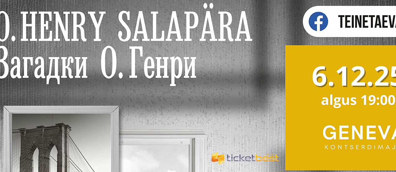 Талантливые актеры Sillamäe Teater-Stuudio TEINE TAEVAS оживят на сцене трогательные и остроумные истории о любви, надежде, благородстве и случайностях, которые меняют жизнь. Ожидайте неожиданного – ведь у О. Генри финал всегда удивляет!