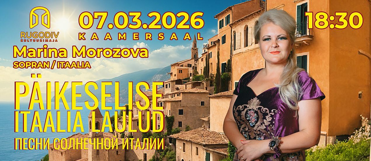 7. märtsil 2026 kell 18.30 toimub Kultuurimajas Rugodiv kontsert "Päikeselise Itaalia laulud".