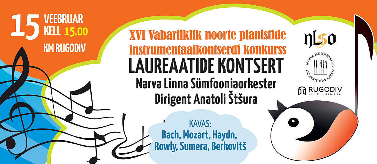 Pühapäeval, 15. veebruaril kell 15.00 esinevad Kultuurimajas Rugodiv Narva Linna Sümfooniaorkestri saatel XVI vabariikliku noorte pianistide instrumentaalkontserdi konkursi võitjad.